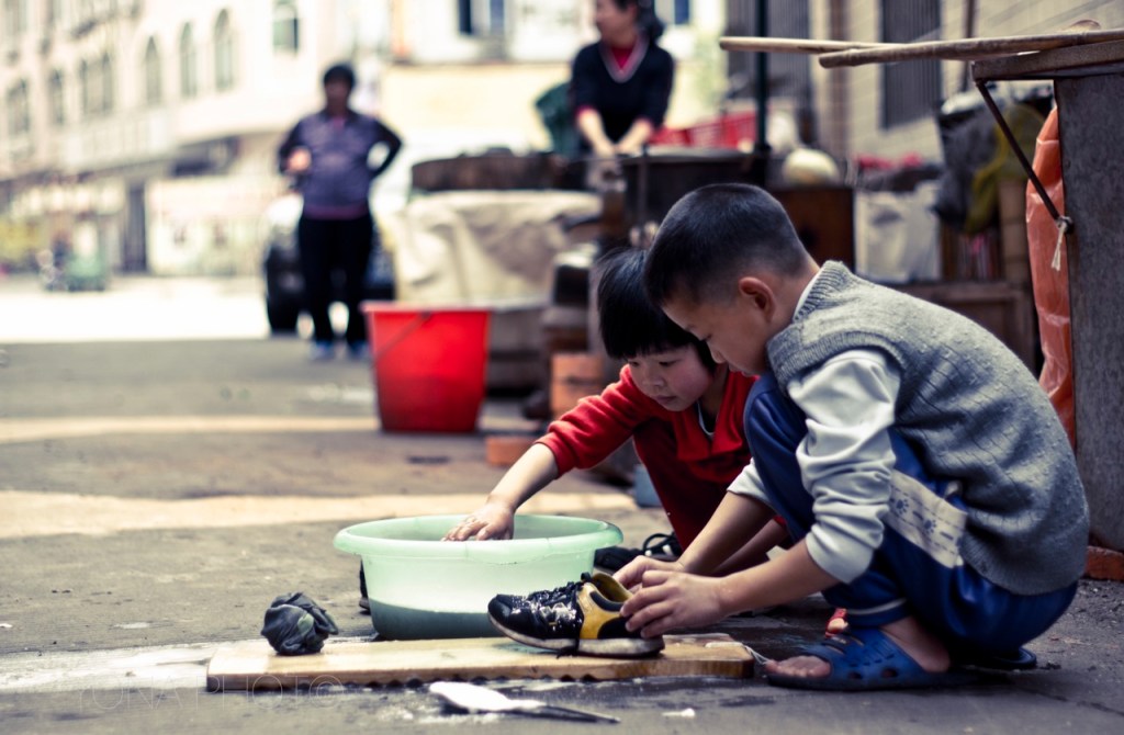 Chinese kids doing the laundry